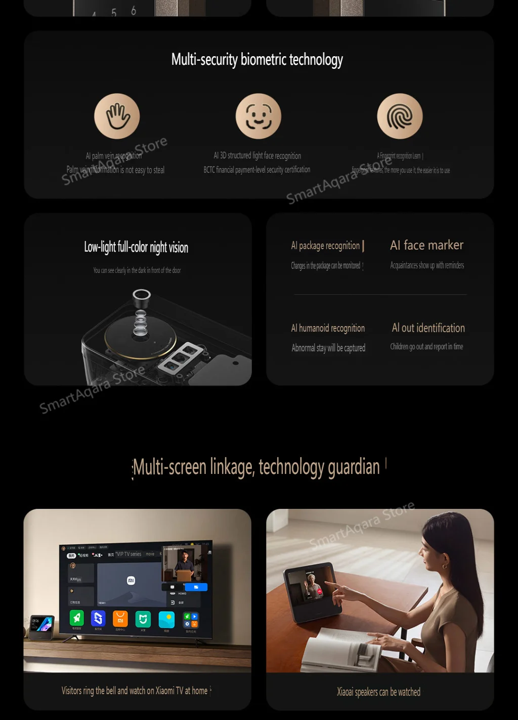 Xiaomi Smart Door Lock M30 PRO Face Recognition Palmar Vein 1s Unlock AI Dual Le